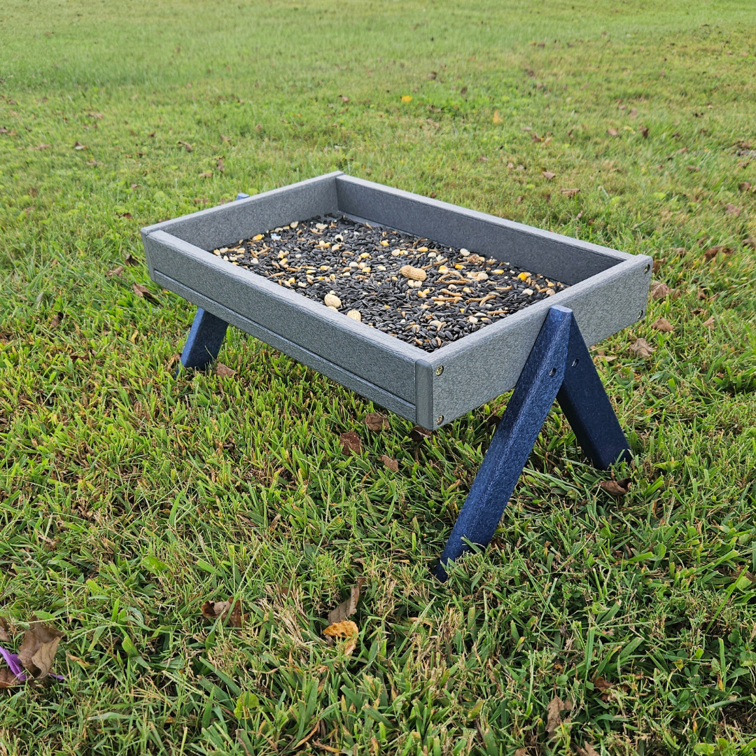 Invite your favorite ground-feeding birds to dine in style with this low-profile platform feeder. Amish-crafted from recycled materials, it’s built to last through every season and blends beautifully into your backyard.