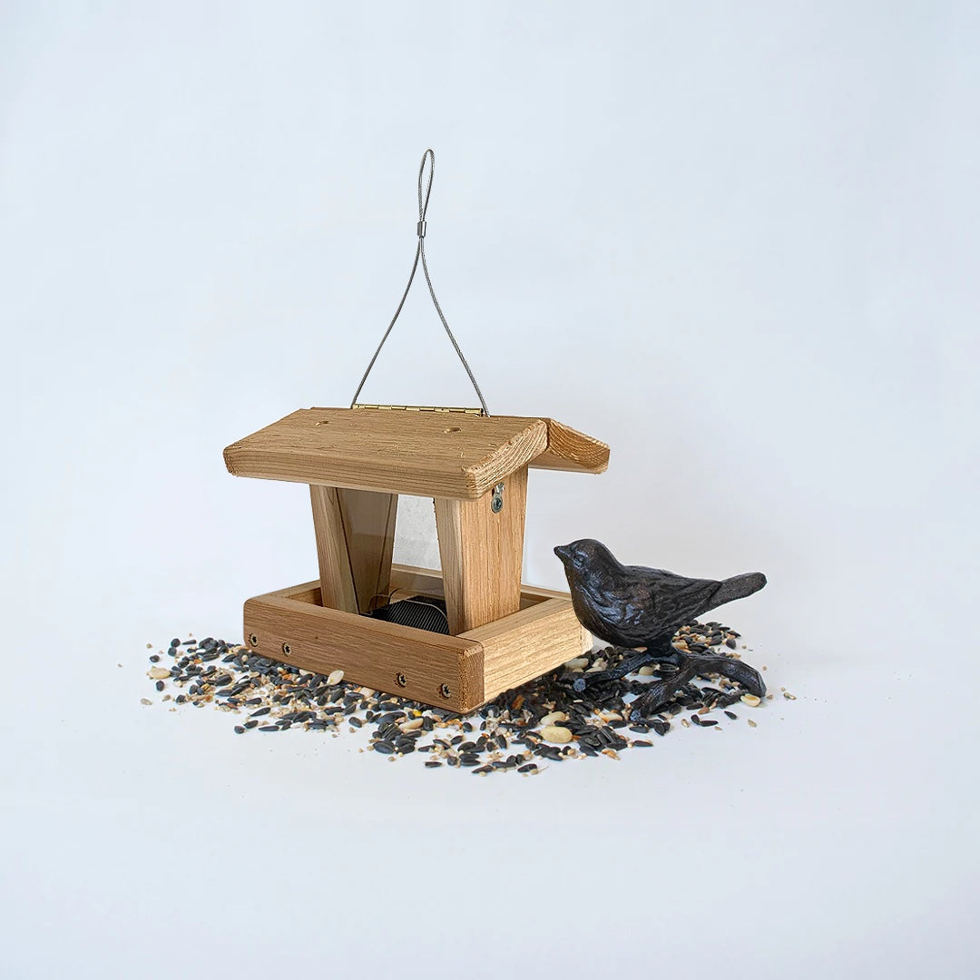 Introducing the Amish-Made Mini-hopper Cedar Bird Feeder – a testament to timeless craftsmanship and natural beauty. Handcrafted from 100% cedar wood, this exquisite feeder is more than just a piece of backyard decor; it's a haven for your feathered friends. Cardinals, Titmice, Chickadees, and more will flock to your garden for a delightful snacking experience like no other. Measures 8-1/2 x 6 x 7 inches.